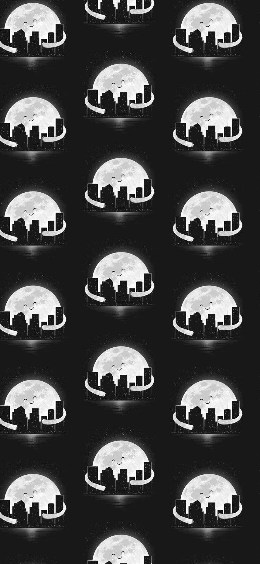Happy Moon Hugging City Skyline Whatsapp Wallpaper